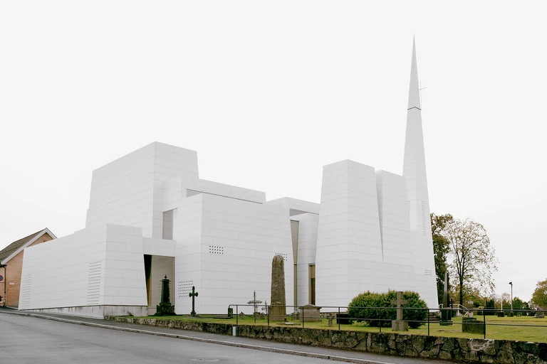 "The new church was developed on the same grid, so it reflects the old church" - he adds. Porcelain also refers to the shining paint of the old church. Not only the external facade was covered with it, but also the interior of the building. In Norway, churches were traditionally painted with white, shiny paint. In this case, it was decided to use porcelain, which has been mined in the town since the beginning of the 20th century.
