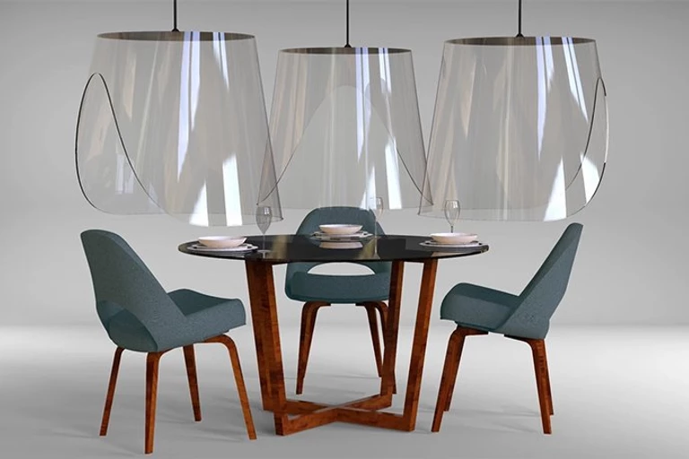 Christophe Gernigon has an idea to create protective barriers that could work in a restaurant. The covers of his design would hang from the ceiling - like lamps - and cover the top of each guest. The covers would be made of Plexiglas.