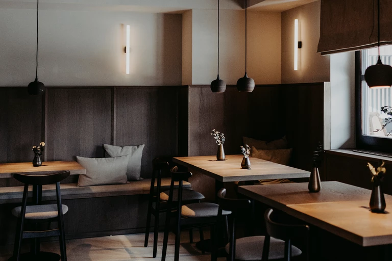 The "Haus Jausern" is located in Salzburg, Austria, between the gentle mountains and the rocky massifs of Saalbach. The restaurant is part of the Design Hotel Haus Jausern leisure complex. The architects wanted to combine quality with elegance. The restaurant was supposed to be unpretentious and create a friendly background for being authentic.For the owners of the premises, the origin of the products used by them and their quality are very important. This philosophy was to be reflected in the interior.