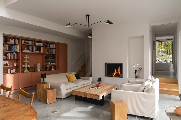 The house belongs to the artist Sophi Manessiez, who lives there with her husband Damien and their children. It is a meeting place for home space, work and creative space. It is also a meeting place and party for family and relatives.