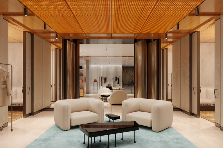 The architecture of the boutiques, whether they are part of a new or existing building, favors transparency, openness to the outside and the integration of nature. The space dedicated to the brand is combined with the public space.