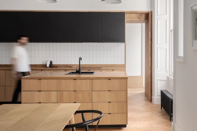 The historic architecture of the interior was a huge advantage: starting from decorative cornices, through the original fireplace, to wooden doors and windows.