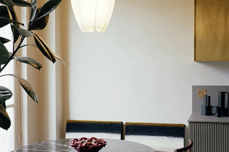 To brighten the interior, brass accents were chosen, such as the fronts of the upper cabinets in the kitchen. The choice of furniture is very eclectic, with a mix of historic finds from the Saint-Ouen flea market and designer designs from the second half of the 20th century with a bit of contemporary accessories.