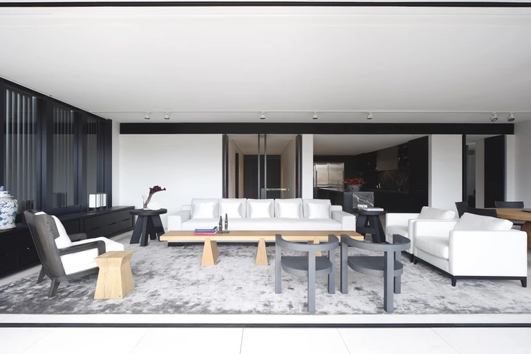 The building is located on the slope of Kirribilla. The windows overlook Circular Quay and the Sydney Harbor Bridge. The Mathieson Architects studio is responsible for the design. The owners wanted to create a comfortable and spacious residence in which they opted for timeless luxury.