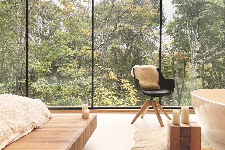 The simplicity of the whole emphasizes the wood and the landscape as the main elements of the decor. “The eye is sensitive to contrast,” says Pier-Olivier Lepage. - "That's why I opted for a clear environment that brings out what's most important."