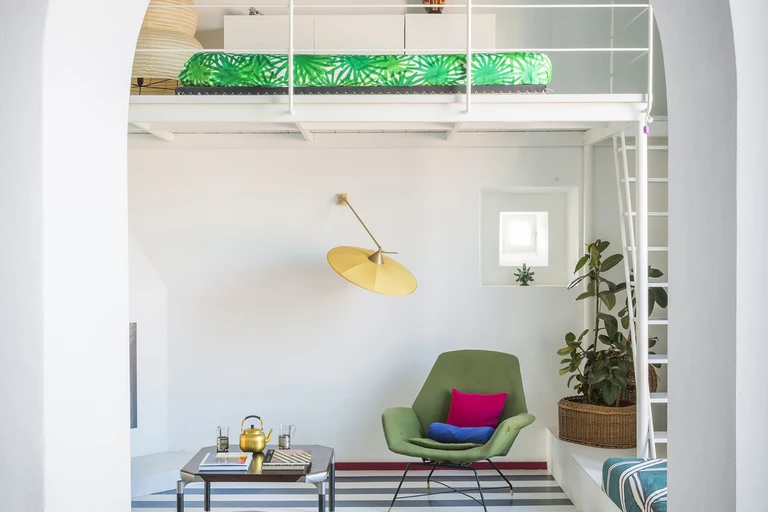 We present an interior full of juicy color and exceptional energy. This apartment is located on the top floor of a Roman tenement house, from its windows we can admire the Colosseum, and on the other side, the Basilica of San Giovanni in the Lateran. Despite the fact that the apartment is located in the center of a large agglomeration, it has a holiday atmosphere right from the doorstep.