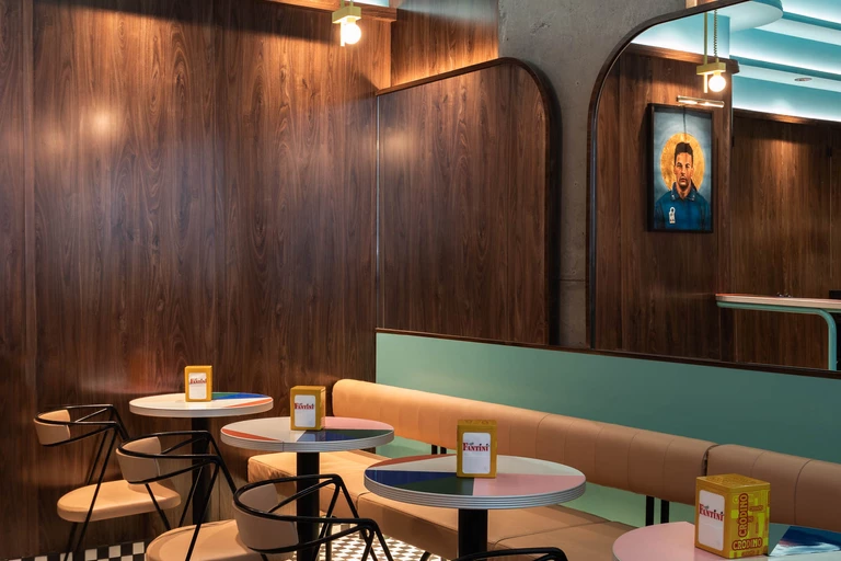 The interior design is the responsibility of the Ménard Dworkind architecture & design studio. Interestingly, the design of the cafe was inspired by the 90s. Its owner - Andreas fondly remembers those times as better, when Italians still had their own currency, less turbulent political climate and the best football team.