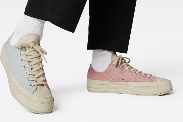 Converse are probably one of the most iconic sneakers in the world. The famous shoes are back in a new setting, which is not only pretty, but also ecological because the canvas used to make shoes comes from recycling.