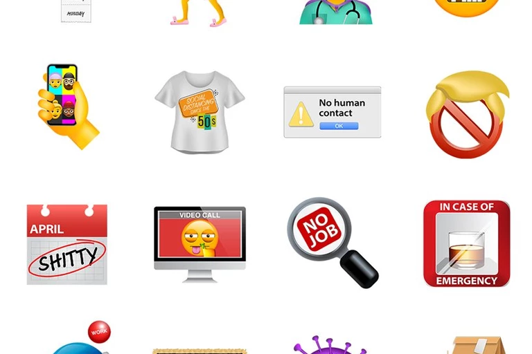 The collection includes more than a hundred emoticons related to the realities of life in the age of coronavirus: from aspects such as hand disinfection and wearing masks, through the feeling of claustrophobia at home and general discouragement, to homemade bread baking.