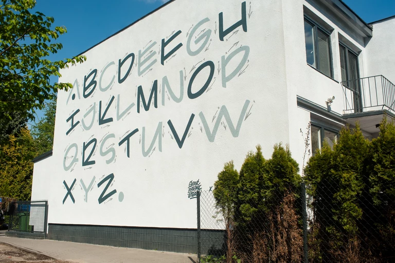 A typographic mural depicting an unusual alphabet was created in Saska Kępa in Warsaw. This is another project initiated and implemented by Good Looking Studio, which introduces the literary theme.