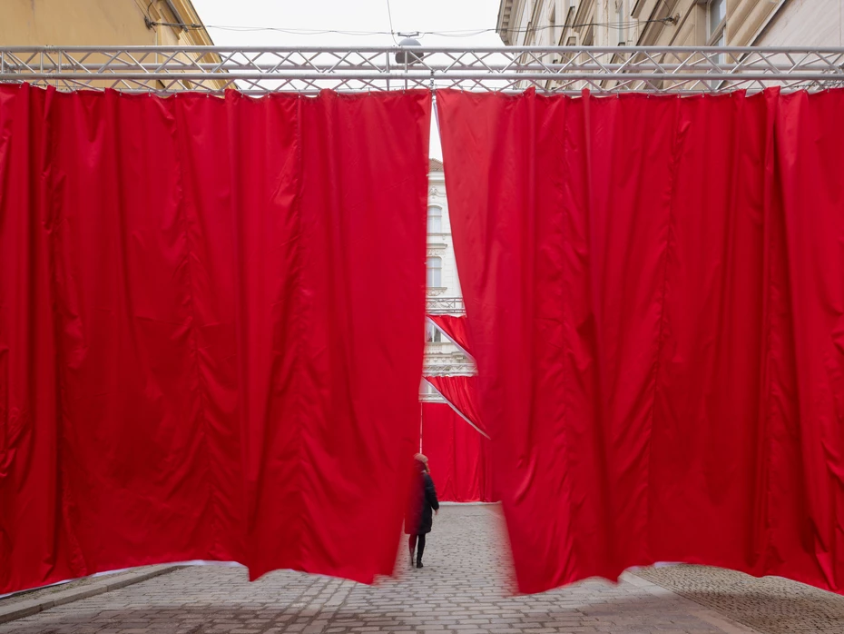 Zamiast zapachu grzanego wina i gwaru komercyjnych straganów – cisza, biel i czerwień tkanin falujących na wietrze. Na Rynku Rzymskim w Brnie stanęła instalacja, która redefiniuje pojęcie miejskich świąt. Kateřina Šedá wraz z architektami z Peer Collective stworzyli przestrzeń, która zamiast do zakupów, zachęca do stanięcia twarzą w twarz z własnymi słabościami.
