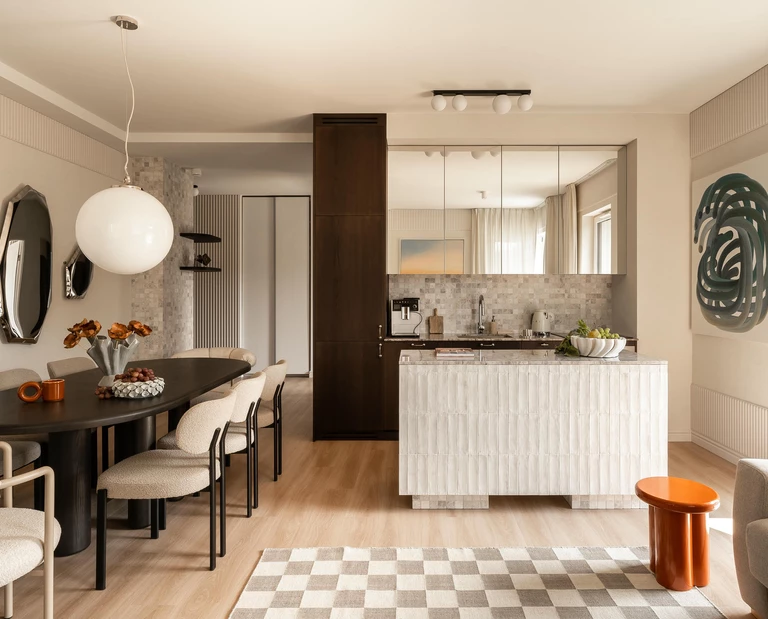 Swoje mieszkanie przy placu Kościuszki we Wrocławiu Anna i Marcin Major – założyciele Major Architekci – zaprojektowali, łącząc inspirację lokalnym klimatem tego miejsca z ciepłymi wspomnieniami lat 80. To zestawienie miejskiej struktury i prywatnej nostalgii stało się fundamentem całej koncepcji.