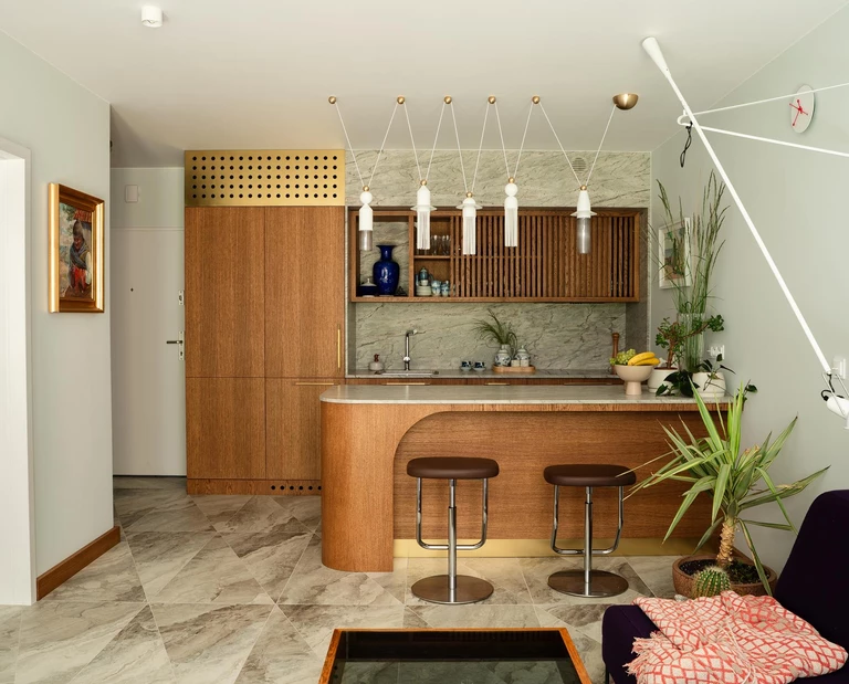W 70-metrowym mieszkaniu duet Bran&Pine stworzył przestrzeń, która jest czymś znacznie więcej niż eleganckim lokum. To osobista opowieść o kobiecości, harmonii i potrzebie spokoju – portret właścicielki, młodej prawniczki, podróżującej po świecie i szukającej balansu między intensywnym rytmem życia a domowym ukojeniem.