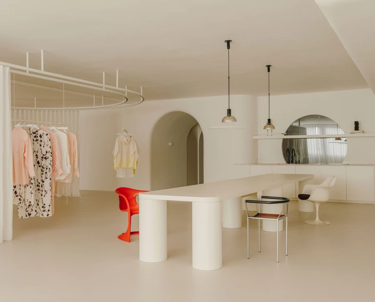 Marka Eikō Ai od lat buduje swój świat wokół inspiracji japońskim rzemiosłem i wielobarwnością światła. Jej znakiem rozpoznawczym stały się sukienki typu kimono, które łączą subtelne wzory z nowoczesnym podejściem do mody. Teraz te projekty zyskały nową oprawę. Studio Isern Serra zaprojektowało dla marki w Barcelonie nowy showroom, który pełni funkcję pracowni, biura i miejsca spotkań z klientami.