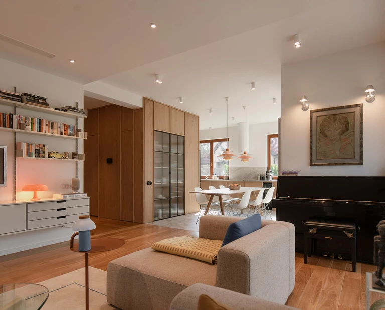 Chcieliśmy domu, w którym sztuka jest naturalną częścią dnia, a nie tylko dekoracją – podkreślają właściciele budynku, którego wnętrza odświeżyli architekci z pracowni projektowej mode:lina™. Bryła domu pozostała nietknięta, a cała uwaga zespołu skupiła się na harmonijnej palecie materiałów, logice układu pomieszczeń i wygodzie codziennego życia.