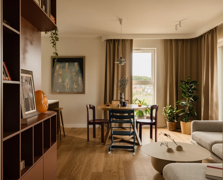 „Nieoczywiste w pierwszym kontakcie, ale otulające” – tak opisują swoje mieszkanie właściciele pracowni 032 Atelier. Chcieli stworzyć tu przestrzeń dopasowaną do ich codzienności: wygodną do życia, gotową na pracę z domu i otwartą na spotkania z przyjaciółmi. Jednocześnie od początku wiedzieli, że w przyszłości mieszkanie trafi na wynajem, dlatego zależało im na rozwiązaniach uniwersalnych, ale z charakterem.