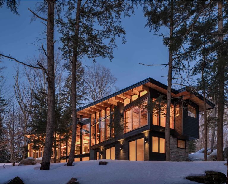 Oglądaliście „Heated Rivalry"? Końcówka 2025 roku zdawała się należeć właśnie do tego serialu. Produkcja z niszowej kanadyjskiej platformy streamingowej Crave, zrealizowana przy stosunkowo niskim budżecie, niespodziewanie stała się globalnym fenomenem. Zdjęcia powstawały między innymi w Barlochan Cottage – całorocznej rezydencji położonej w regionie Muskoka Lakes w Ontario. Za projekt odpowiada studio Trevor McIvor Architects.
