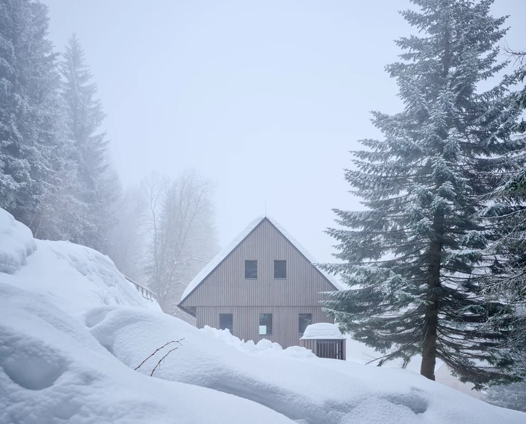 Podczas gdy my w mieście wciąż z nadzieją spoglądamy w niebo, wypatrując pierwszych, nieśmiałych płatków śniegu, w czeskich Karkonoszach zima rozgościła się już na dobre. W miejscowości Strážné, pośród bieli i ciszy, stanął dom, który jest świetnym przykładem na to, jak współczesna architektura może kłaniać się tradycji bez popadania w skansen.