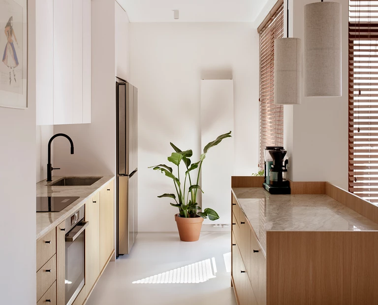 Nietypowo połączone mieszkania. Ciepły minimalizm od pracowni am.home