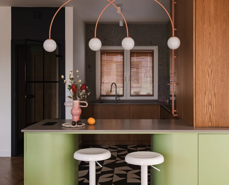 Na warszawskich Bielanach Justyna Ciurzyńska ze studia TAKA PRACOWNIA zaprojektowała dla siebie, swojego partnera oraz małego psa 90-metrowe mieszkanie. Wnętrze, powstałe na piętrze domu z lat 90., jest jednocześnie funkcjonalną przestrzenią do życia i bardzo osobistą opowieścią o kolorze, rodzinnych pamiątkach oraz zamiłowaniu do estetyki vintage.