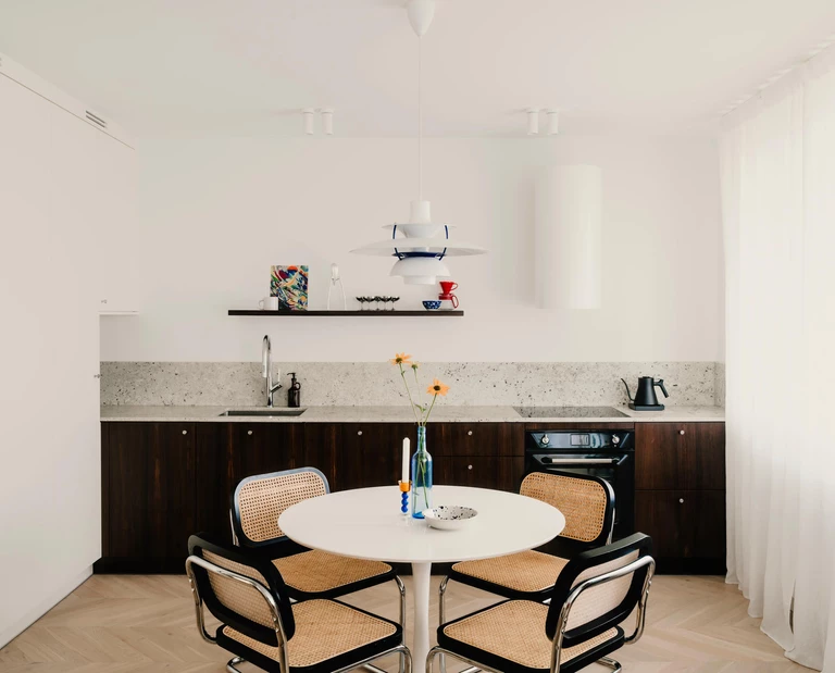 Swoje mieszkanie przy placu Kościuszki we Wrocławiu Anna i Marcin Major – założyciele Major Architekci – zaprojektowali, łącząc inspirację lokalnym klimatem tego miejsca z ciepłymi wspomnieniami lat 80. To zestawienie miejskiej struktury i prywatnej nostalgii stało się fundamentem całej koncepcji.