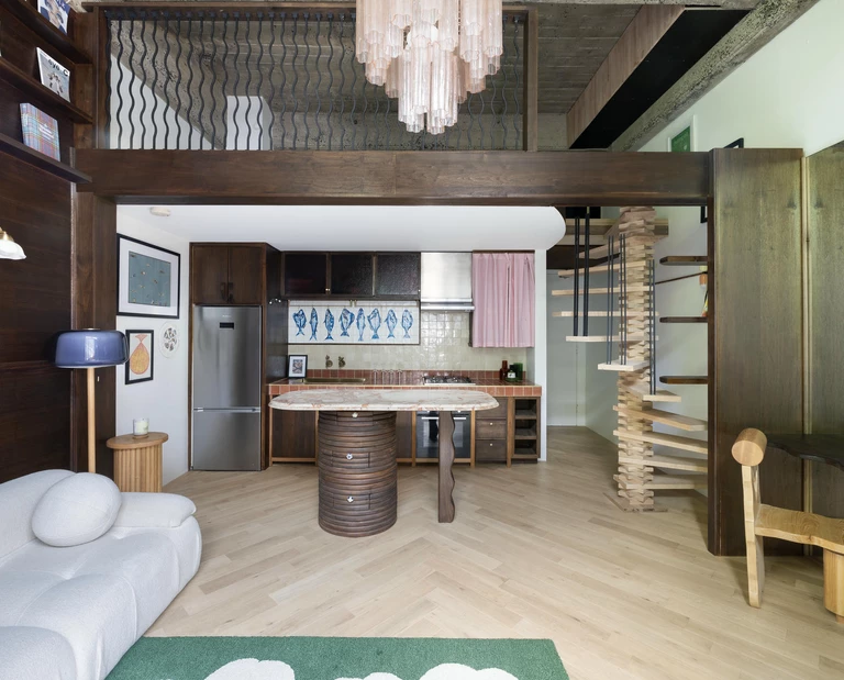 Bazą kompozycji tego wnętrza są trzy gatunki drewna, a centralnym elementem – spiralna klatka schodowa. Jenga Loft, zaprojektowany przez Jonathana Frienda ze studia JFORM, powstał na podwalinie niewielkiego metrażu, sprytnych rozwiązań i podróży do Hiszpanii.