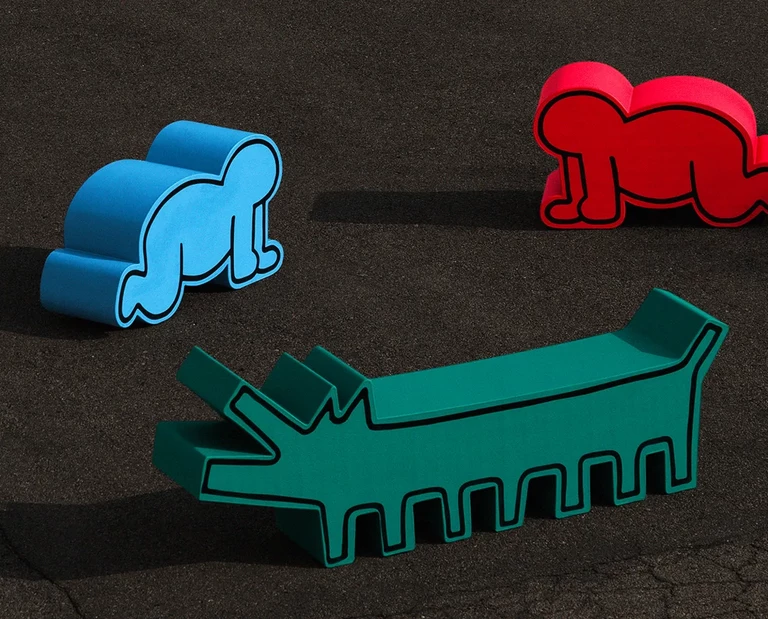 Dwa ikoniczne projekty Keitha Haringa z legendarnego parku rozrywki Luna Luna już wkrótce będą dostępne w regularnej sprzedaży. Wszystko to za sprawą włoskiej marki Gufram, która nawiązała współpracę z fundacją artysty i przywróciła do życia jego awangardowe siedziska z motywem szczekającego psa i raczkującego dziecka.