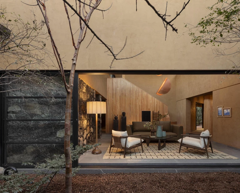 Na brzegu rzeki w Meksyku powstał niezwykły dom autorstwa pracowni TAAB – prowadzonej przez Diego Torresa Guízara i Dianę Ortiz Moreno – a którego wnętrza zaprojektowało Estudio Karla Vázquez. Architekci wykorzystali trójkątną działkę i bliskość wody, by stworzyć przestrzeń, która w równym stopniu czerpie z natury, co ją uzupełnia. Casa Jacona to projekt, który subtelnie łączy tradycję regionu, współczesną formę i świadome podejście do krajobrazu.