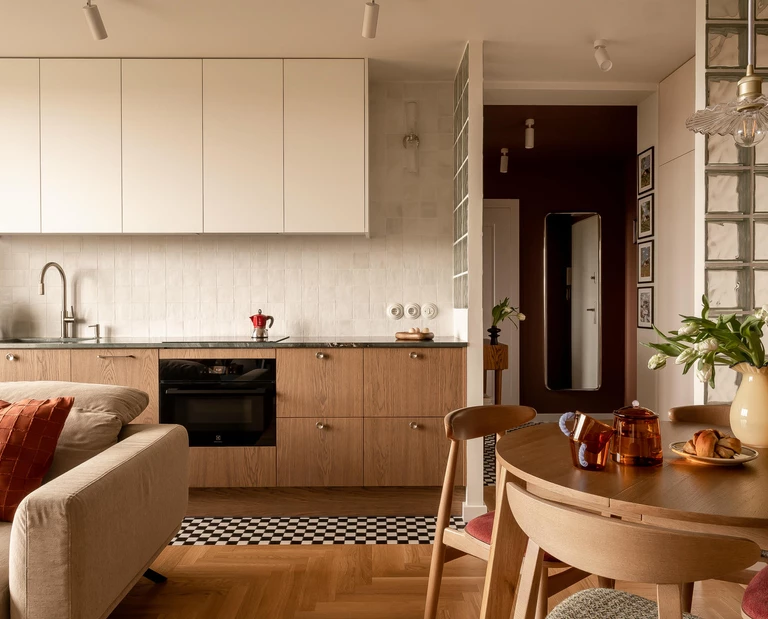 Swoje mieszkanie przy placu Kościuszki we Wrocławiu Anna i Marcin Major – założyciele Major Architekci – zaprojektowali, łącząc inspirację lokalnym klimatem tego miejsca z ciepłymi wspomnieniami lat 80. To zestawienie miejskiej struktury i prywatnej nostalgii stało się fundamentem całej koncepcji.