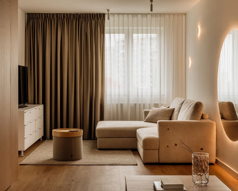 W 70-metrowym mieszkaniu duet Bran&Pine stworzył przestrzeń, która jest czymś znacznie więcej niż eleganckim lokum. To osobista opowieść o kobiecości, harmonii i potrzebie spokoju – portret właścicielki, młodej prawniczki, podróżującej po świecie i szukającej balansu między intensywnym rytmem życia a domowym ukojeniem.