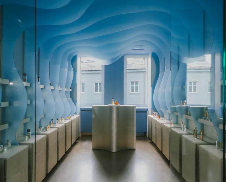 Podmuch powietrza wprawia w ruch chmury, rozwiewa mgłę, niesie zapach – ta delikatna ulotność stała się punktem wyjścia do nowej aranżacji perfumerii Impressium w warszawskim Domu Handlowym Mysia 3. Projekt powstał we współpracy pracowni Kulczyński Architekt i NOKE Architects.