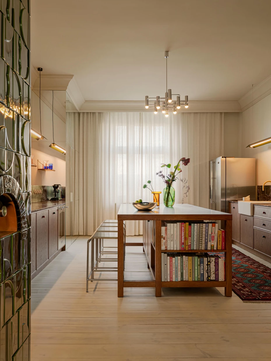 W jednym z praskich budynków z końca lat 30. XX wieku, z widokiem na Wełtawę, projektant Prokop Hartl przeprowadził renowację mieszkania dla młodej rodziny. Koncepcję oparł na wyważeniu dwóch porządków: szacunku dla historycznej tkanki wnętrza oraz współczesnych, funkcjonalnych rozwiązań.