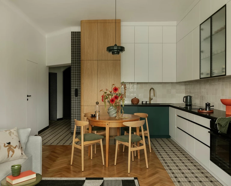 Na poznańskim Grunwaldzie, w kameralnym budynku z lat 40., znajduje się mieszkanie, które przeszło całkowitą metamorfozę według projektu Anny Komorowicz. 64-metrowa przestrzeń na parterze, pierwotnie o zamkniętym i mało funkcjonalnym układzie, dziś jest otwarta, płynna i pełna naturalnego światła.
