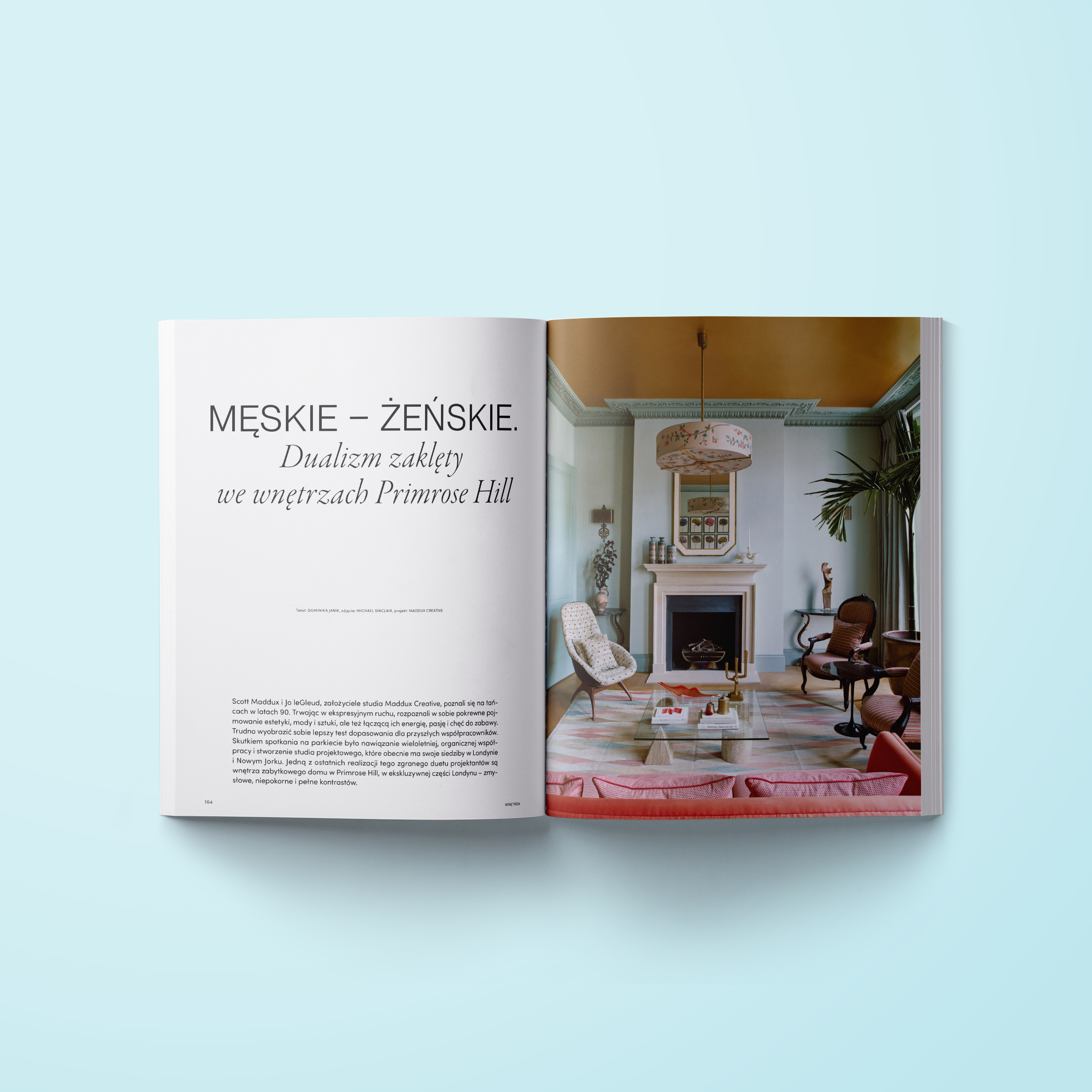 Wnętrza domu na Primrose Hill zaprojektowane przez duet Maddux Creative to studium napięcia pomiędzy przeciwieństwami. Męskie i żeńskie, surowe i miękkie, ciemne i jasne – kontrasty nie ścierają się ze sobą, a budują zbalansowaną całość. To przykład projektowania, które uczy, jak świadomie łączyć kontrasty.