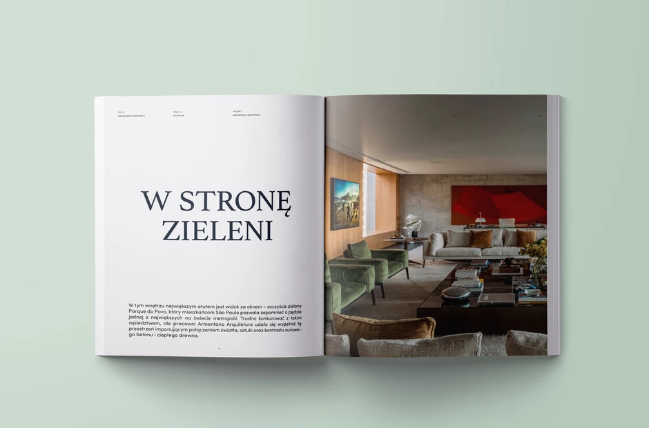 W albumie prezentujemy także wnętrza, które nie próbują konkurować z widokiem za oknem – przeciwnie, stają się dla krajobrazu cichą, wyrafinowaną ramą. W apartamencie z widokiem na Parque do Povo to właśnie panorama zielonego parku nadaje ton całej aranżacji. Być może jest to lekcja, która uświadamia, że czasem najlepszym projektowym decyzjom towarzyszy umiejętność ustąpienia z pierwszego planu.