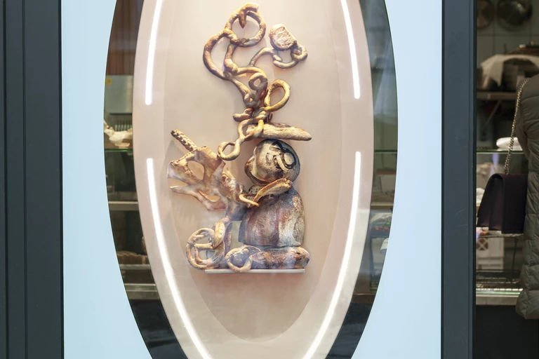 J.K.: To jest ważne, bo taki był nasz cel, żeby w tych trudnych czasach, takich trochę smutnych i zimowych, dać okazję do kontemplacji sztuki. Nasze witryny zrobiłaś specjalnie na święta, jednak brakuje w nich elementów świątecznych, nie ma tu dzwoneczków, świeczek, mikołajków.