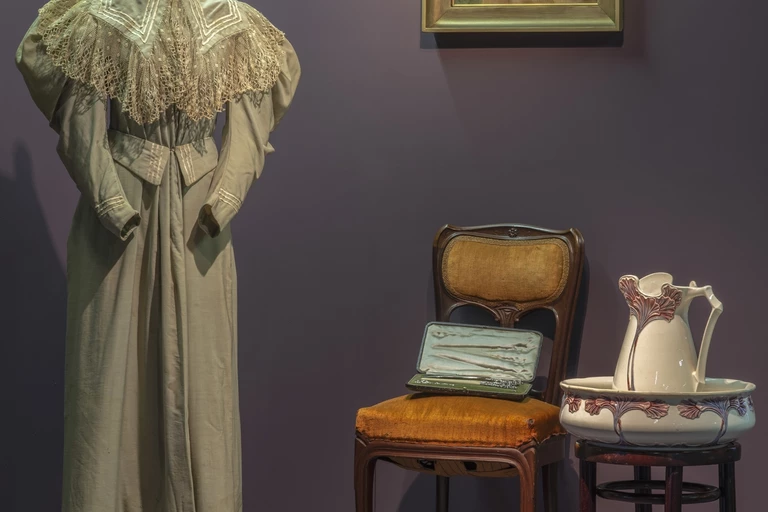 Na wystawie zobaczymy rozmaite stroje, tkaniny i dodatki w aranżacji nawiązującej do danego okresu historycznego. Opowieść o modzie damskiej rozpocznie się od gorsetu i bielizny, pokazany zostanie strój cyklistki, przywołamy klimat secesyjnego wnętrza i wygląd ówczesnej kobiety, zarówno w sali balowej fin de siècle, podczas kąpieli morskich czy jazdy automobilem. Szczególnie zaakcentowany zostanie okres wielkich zmian w modzie, począwszy od rewolucyjnej metamorfozy bielizny damskiej, jak i stroju dziennego prezentowanego w pokoju w stylu art déco. Prześledzimy ewolucję obyczajową na przykładach strojów plażowych i tenisowych z międzywojnia. Przeniesiemy się na dancing z lat 20. - 30. XX w., gdzie zobaczymy suknie wieczorowe, w których tańczono charlestona, jazz lub walca. Pojawi się tam model sukni podobny do stroju, który nosiła Tola Mankiewiczówna w filmie „Pani minister tańczy”. Zaprezentowane zostaną także przykłady mody dziennej z lat 20. i 30. oraz stylu New Look Christiana Diora jako wzorzec klasycznej powojennej elegancji. W ramach ekspozycji pojawią się stroje sygnalizujace kryzysy ekonomiczne czy kataklizm wojny: bluzka uszyta z angielskiej szpiegowskiej mapy wojskowej czy ubiór uczestniczki Powstania Warszawskiego.