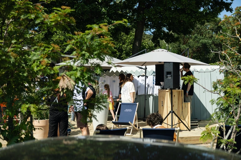 Jednak to nie wszystko, ponieważ wspólnie przygotowaliśmy cykl warsztatów letnich i spotkań pod patronatem Invest Komfort. Jednym z większych wydarzeń, które razem stworzyliśmy, są pierwsze Targi Designu organizowane u nas na kempingu. Chyba na całym Półwyspie Helskim nie było wcześniej podobnego eventu. Celem wydarzenia było zaproszenie lokalnych rzemieślników oraz wystawców zajmujących się rękodziełem. Wpletliśmy też w to grono twórców bliskich naszej społeczności, w tym shaperów desek i chłopaków od vintage rowerów.