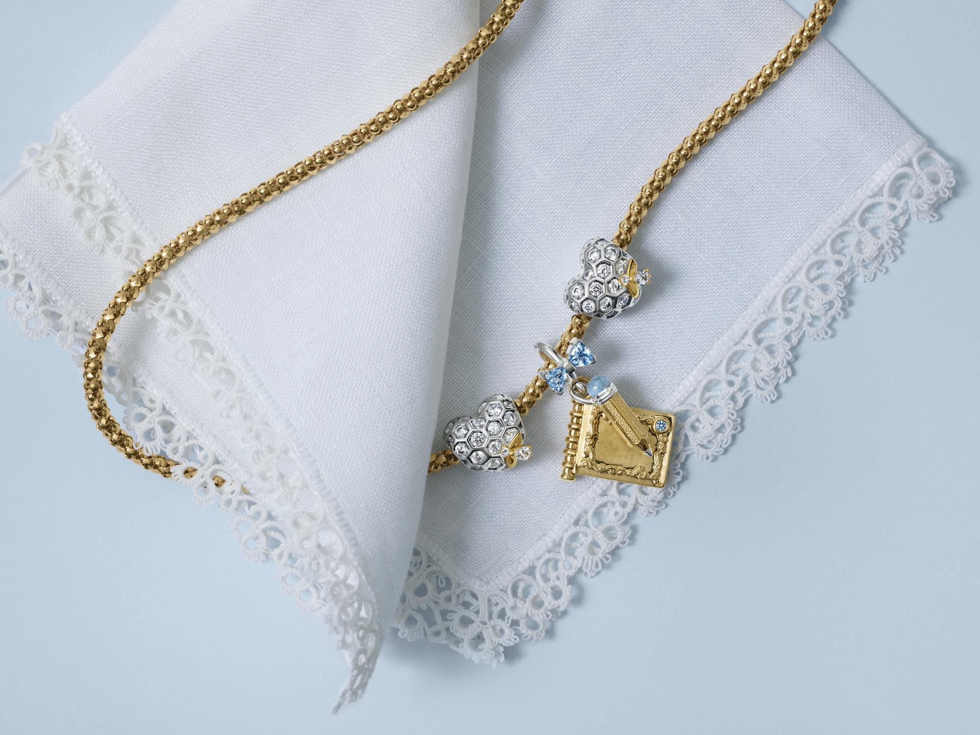 Biżuteria została wykonana z recyklingowanego srebra próby 925 oraz z 14-karatowym złoceniem. Do jej produkcji wykorzystano cyrkonie sześcienne, kryształowe detale i hodowane perły słodkowodne.