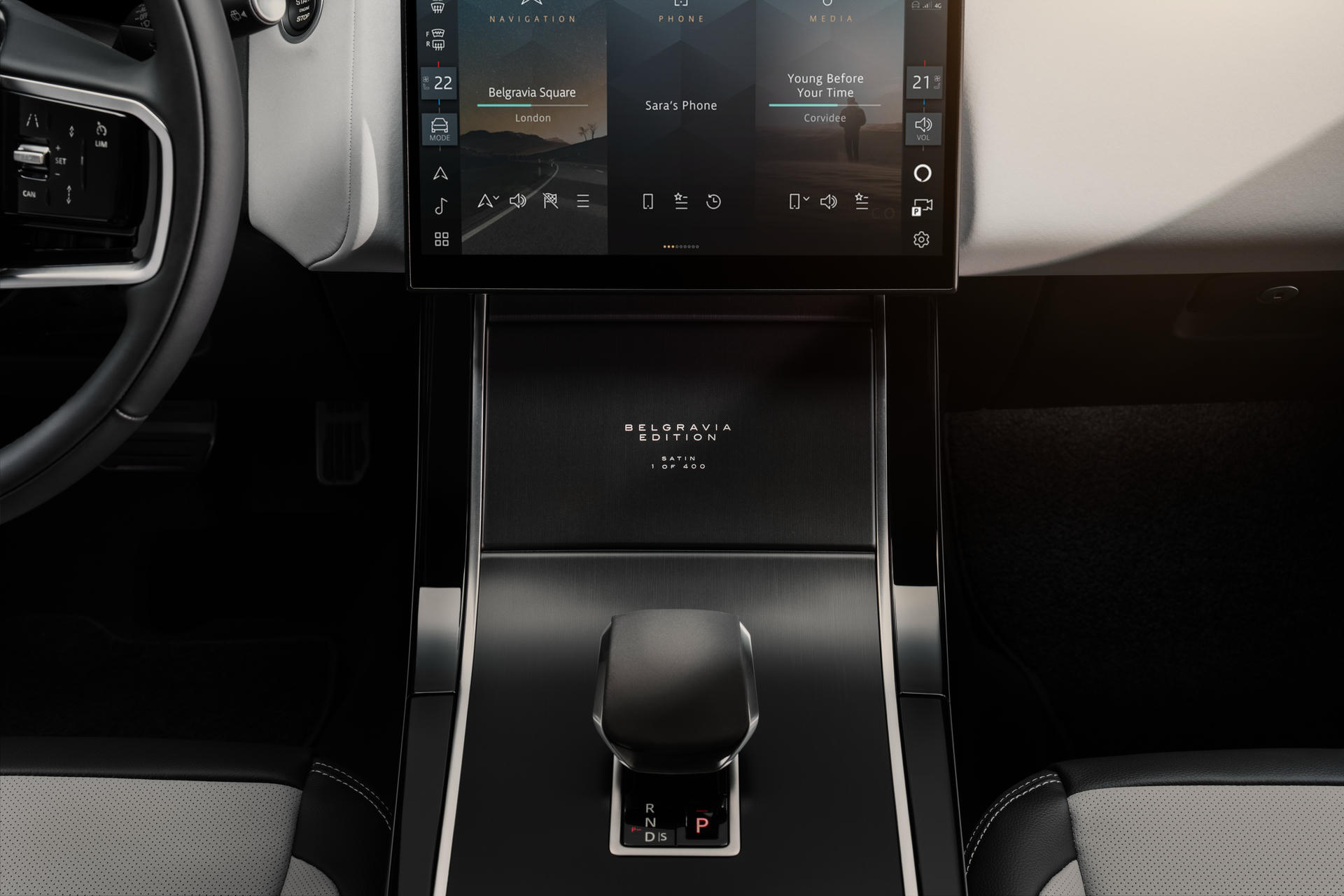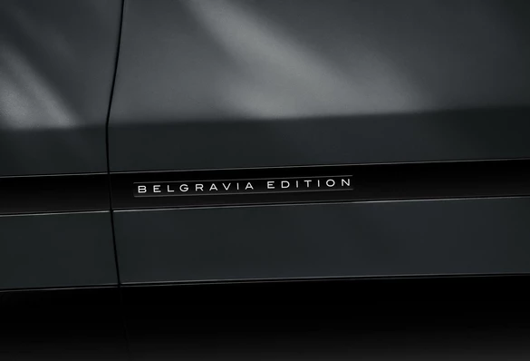 Belgravia Edition Satin to kolekcjonerska odsłona limitowana do 400 egzemplarzy. Po raz pierwszy w historii Velara zastosowano matową folię Clear Satin Protective Film, uzupełnioną 22-calowymi obręczami Dark Agate Grey z wykończeniem Satin Black oraz oznaczeniem „1 of 400”.