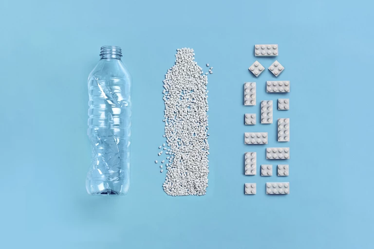 PET został uzyskany z wyrzuconych i poddanych recyklingowi plastikowych butelek, zmieszanych z sekretnymi „dodatkami wzmacniającymi” LEGO, dzięki czemu końcowy efekt jest wystarczająco mocny, aby spełnić standardy firmy.