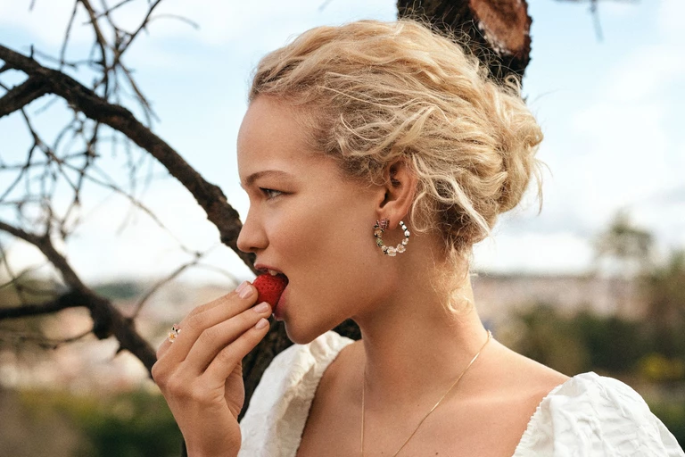 Na szczególną uwagę zasługują wykonane ze złota kolczyki koła, które przedstawiają niezwykły cykl kwitnienia truskawki – od pączków przez kwiatki do soczystego owocu. Podobnie jak w przypadku koniczyny, pięciolistne bzy przynoszą szczęście, dlatego można natknąć się na nie także w ramach kolekcji Kwiaty Nocy i traktować jako swój osobisty talizman.