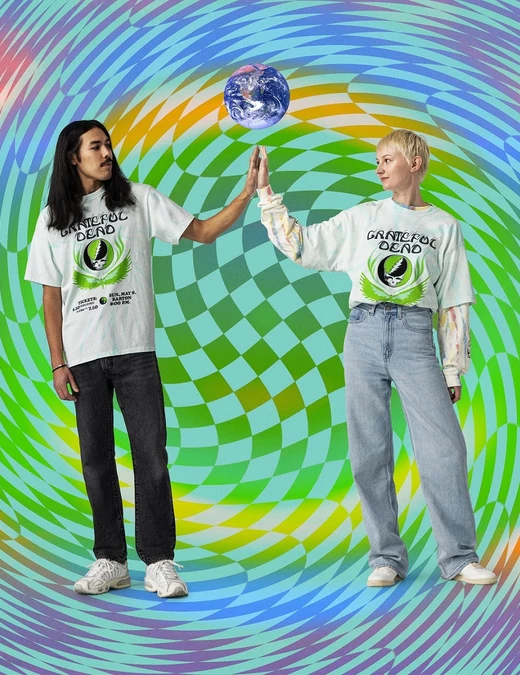 Kapsułowa kolekcja Levi's® x Grateful Dead obejmuje linię koszulek Levi's®, polarów, dżinsów i akcesoriów z grafikami Dead i kolorowym tie-dye inspirowanym Grateful Dead. Aby uhonorować dziedzictwo zespołu i uchwycić radość, jaką ich muzyka przyniosła tak wielu ludziom w ciągu ostatniego półwiecza, kolekcja opowiada niesamowitą historię zespołu w unikalny i kreatywny sposób.