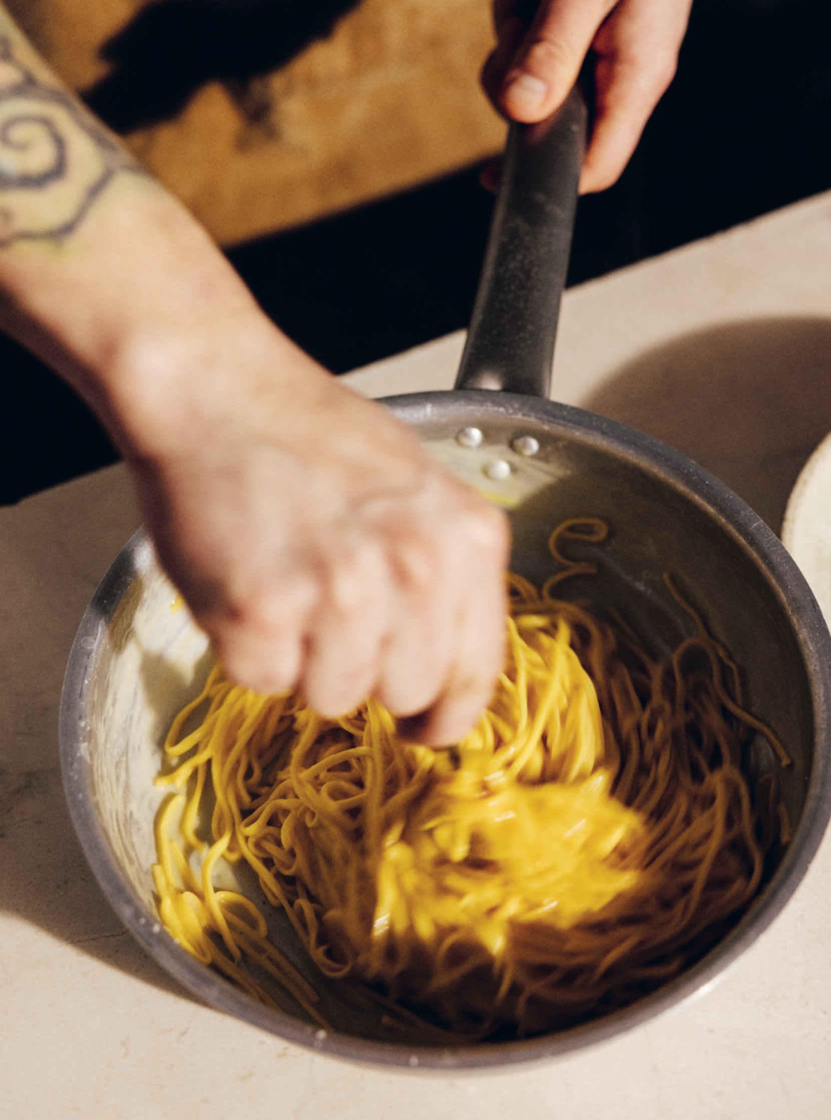 Za pastelowymi kadrami makaronu kryje się bardzo niefiltrowane tempo życia. Mateo nazywa siebie pracoholikiem: jest z Łodzi, „zawsze dużo pracował”, pierwszą sezonową pracę miał w wieku trzynastu lat, i do dziś ma odruch, żeby w kuchni być pierwszym i wychodzić ostatnim.