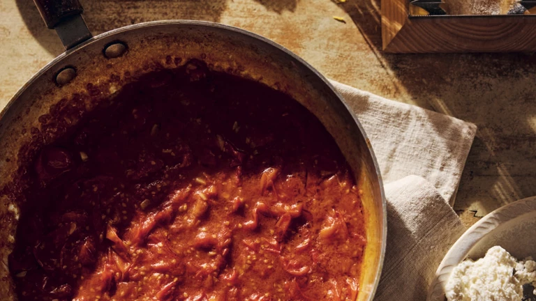 Mateo lubi dodatki, które są bardziej o teksturze niż o spektaklu: pan grattato z wysuszonego chleba, dobry ser (pecorino), zioła, oliwa, czosnek. Czosnek i cebula rosną w jego ogrodzie, a on mówi o tym jak o procesie, który się obserwuje, a nie tylko zużywa. W jego filozofii gotowania jest sporo „cucina povera”: nieważne, co masz w lodówce, z tego zawsze da się zrobić makaron. Czasem to tylko pasta z oliwą, parmezanem i świeżo zmielonym pieprzem - jeśli będzie domowe, będzie pyszne.