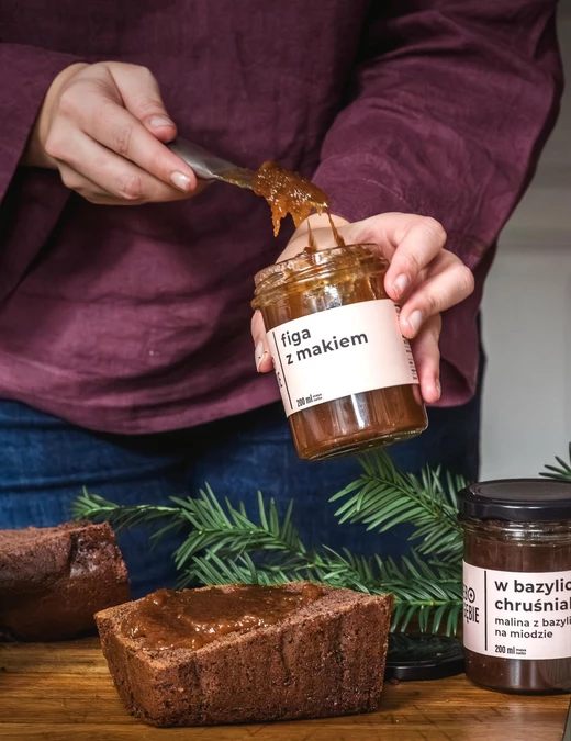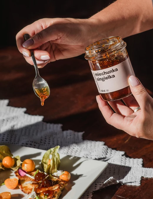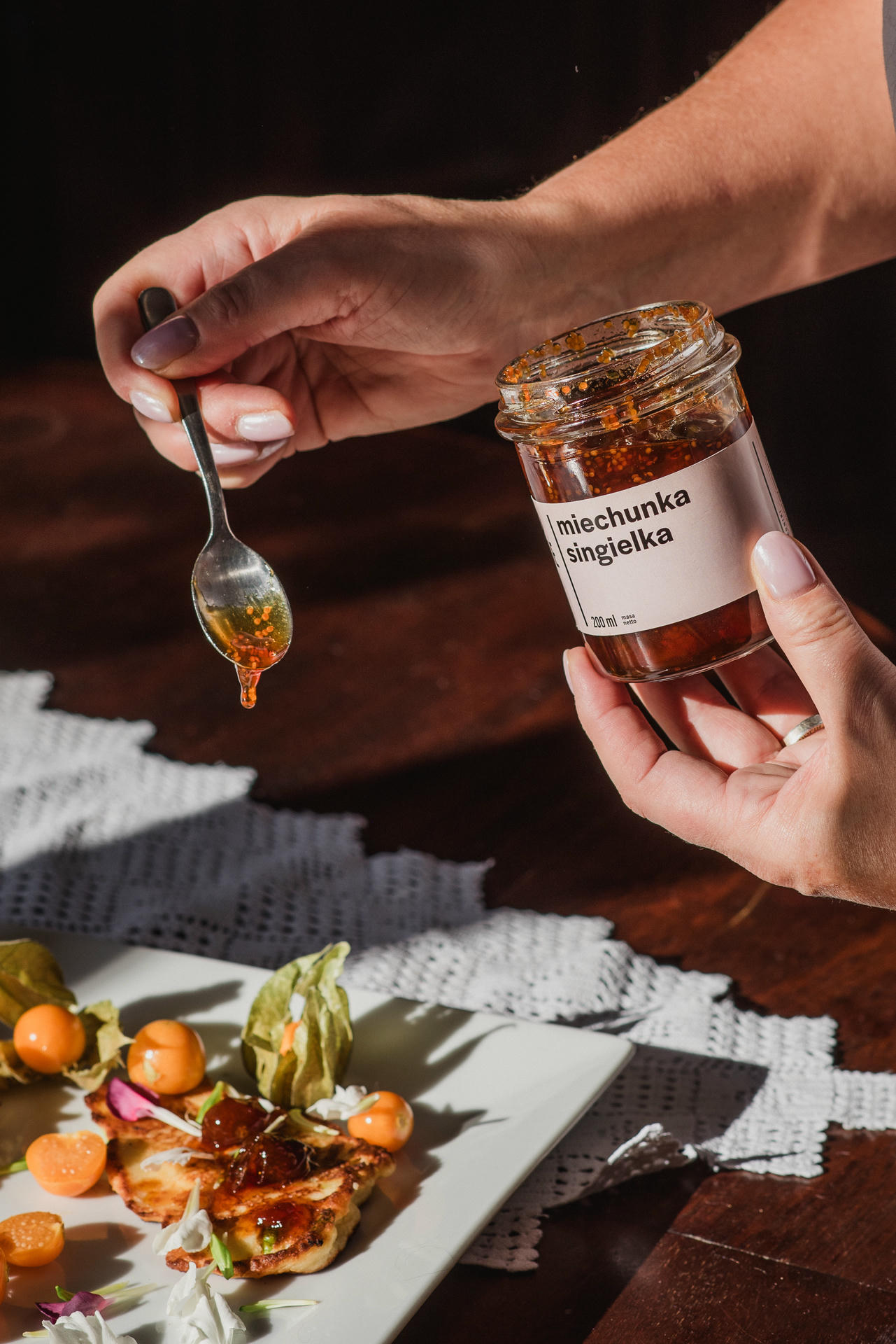 Zaczęło się skromnie, bo od pierwszego słoika konfitury, który miał pomóc dotrwać do pierwszego. Z czasem zaczęły powstawać kolejne smaki, coraz odważniejsze. Dzisiejsze produkty marki to ślady podróży, wspomnień i intuicji: mango curry z Indii, kajmak z solą i whisky przywołujący dzieciństwo, papaja z pieprzem jako ukłon w stronę smakowej odwagi. To świat zamknięty w słoiczkach, które stały się dla marki symbolem nowego początku.