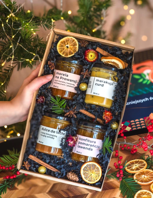 Wśród smakowych perełek pojawiły się również przemyślane zestawy prezentowe. To starannie skomponowane kompozycje trzech lub czterech produktów, dostępne w dwóch pojemnościach oraz w odsłonach słodkich, wytrawnych i słodko-wytrawnych. Zapakowane w estetyczne pudełka są gotowe do wręczenia od razu po zakupie.