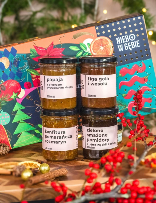 Niebo w Gębie to marka, która stworzyła własny język smaku: odważny, nieoczywisty i pełen emocji. W jej ofercie znajduje się dziś niemal 50 przetworów – konfitur, sosów, octów, kremów i dodatków kulinarnych, które łączą tradycję z nowoczesnymi fuzjami. Nie jest to jednak marka zrodzona z kalkulacji i chłodnych analiz. Ta opowieść zbudowana jest na chęci zmian, przeciwnościach losu, odwadze i nieoczywistych rozwiązaniach.