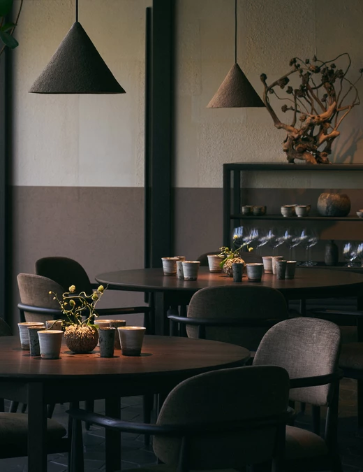W tym roku Noma postanowiła dopieścić smakoszy w Azji, organizując 10-tygodniowy pop-up w Kyoto. Ambitne zadanie stworzenia tymczasowej przestrzeni powierzono duńskiemu studiu projektowemu OEO z siedzibą w Kopenhadze i studiu projektowemu w Tokio. Miejscem pop-upu była przestrzeń w butikowym hotelu Ace, a do dyspozycji restauracji i projektantów oddano salę o powierzchni 250 metrów kwadratowych, z wysokimi sufitami oraz przeszkloną ścianą, z której rozpościera się widok na bujny ogród. Zgodnie z założeniem, nowa przestrzeń miała z jednej strony oddawać ducha oraz filozofię Nomy, oraz podkreślać jej skandynawski rodowód, a jednocześnie wyrażać szacunek dla lokalnej estetyki, która od lat stanowi wielką inspirację dla samego szefa kuchni kopenhaskiego lokalu, Rene Redzepiego. Szczęśliwie, OEO są mistrzami „japandi”, czyli stylu łączącego skandynawskie i japońskie elementy. Inspiracją dla architektów oraz wspierającej jej w działaniach stylistki Nomy Christine Rudolph było samo Kyoto, słynące z długich tradycji rzemieślniczych. Inspiracje te wyrażono w postaci wykorzystanych materiałów, takich jak ceramika, drewno czy maty tatami, z którym wykonano maty akustyczne oraz przepierzenia sali.