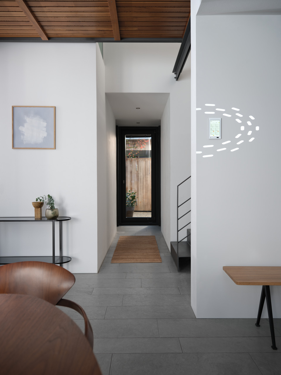 Urządzenie komunikuje się w sposób szyfrowany, dzięki czemu zapewnia ochronę przed nieuprawnionym dostępem. Dostępne jest w dwóch wariantach wykończenia: ze szkłem czarnym lub białym – każdorazowo z odporną na zarysowania, szklaną płytą przednią.